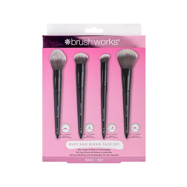 Presentamos el Set Brushworks Buff and Blend Face, una colección cuidadosamente seleccionada de cuatro brochas esenciales diseñadas para mejorar tu rutina de maquillaje. Este set incluye la brocha No. 10 Bronzer Brush, la brocha No. 2 Buffing Foundation Brush, la brocha No. 8 Precise Angled Concealer Buffing Brush y la brocha No. 5 Powder Brush, cada una seleccionada para ayudarte a conseguir la base perfecta. Con cerdas sintéticas de taklon supersuaves, estas brochas garantizan que tus productos se deslicen de forma suave y uniforme, a la vez que son extremadamente suaves con la piel.