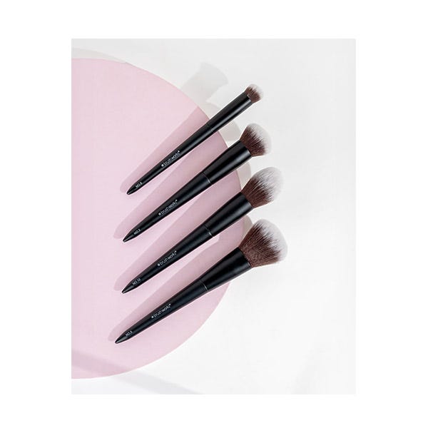 Gracias a nuestra nueva escala de densidad Brushworks, puedes adaptar tu selección de brochas en función de la densidad para conseguir precisión en cada aplicación. La Brocha Bronceadora n.º 10, con una escala de densidad de 0, es una brocha superesponjosa, perfecta para conseguir un bronceado natural. Para una aplicación suave de la base de maquillaje, utilice la Brocha para Base de Maquillaje Pulidora n.º 2. Con una escala de densidad de 5, esta brocha extiende perfectamente la base de maquillaje sobre la piel. La brocha pulidora nº 8 Precise Angled Concealer Buffing Brush tiene un índice de densidad de 7. Su diseño en ángulo permite una cobertura específica, difuminando el corrector sin esfuerzo. Completa tu rutina de maquillaje con la brocha para polvos n.º 5, cuya escala de densidad es de 0, perfecta para fijar el maquillaje y conseguir un acabado suave. El envase sin plástico refleja nuestra dedicación a la sostenibilidad, minimizando el plástico de un solo uso.