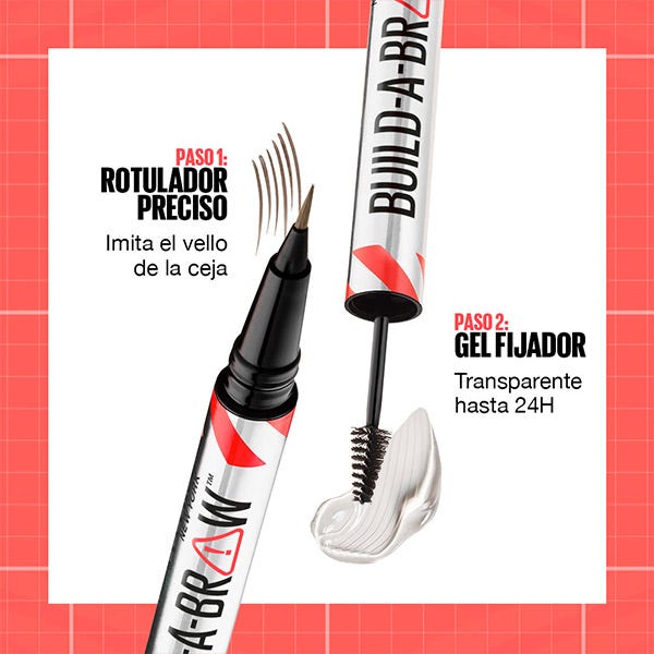 Maybelline New York, Build-A-Brow 2-en-1 con Rotulador preciso y Gel Fijador de cejas.