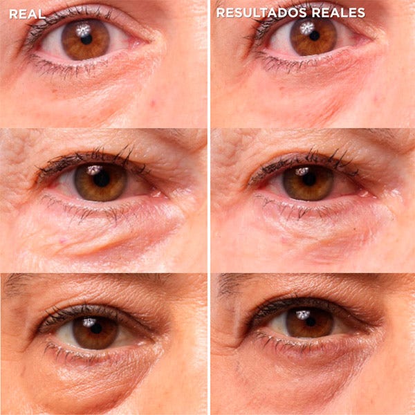 Sobre la piel totalmente seca, aplica una pequeña cantidad de Bye Bye Under Eye Bags en cada ojo.