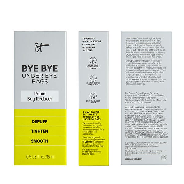 Tras 10 años de investigación, iT Cosmetics desvela que en tan sólo 15 minutos desinflama, tensa y suaviza las bolsas - como un efecto lifting temporal en 1 sólo frasco.