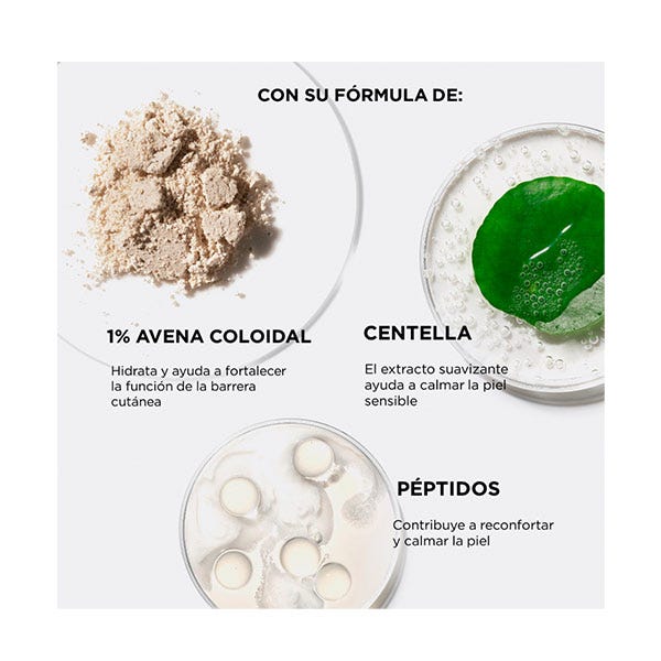 Fórmula calmante de textura ligera con un 1% de avena coloidal, centella y péptido