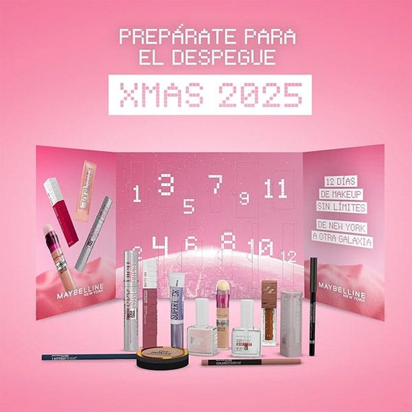 El Calendario Adviento Maybelline 2025 contiene 12 productos de maquillaje y cuidado personal, incluyendo labiales, esmaltes y lipliner, para disfrutar día a día de la temporada navideña. Es ideal tanto para regalar como para uso personal. Además, ¡ofrece la oportunidad de descubrir productos nuevos!
