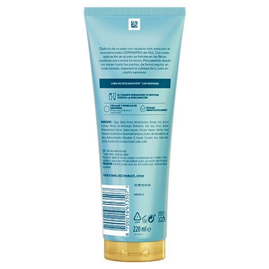 ¿Sabías que nuestro acondicionador equilibrante puede ayudar a mejorar la protección contra la sequedad y la caspa? El champú y acondicionador anticaspa DERMAXPRO de H&S actúan conjuntamente para ofrecer la máxima hidratación al cabello y al cuero cabelludo. Este acondicionador para el cabello y el cuero cabelludo está potenciado por un ingrediente activo clínicamente probado: la piroctona olamina. ¿El resultado? Cabello y cuero cabelludo nutridos para un pelo con movimiento y sin caspa*. * Caspa visible, con un uso regular.