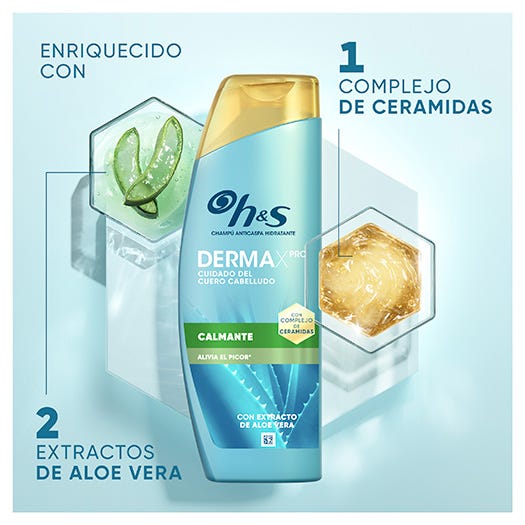 ¿Sabías que el cuero cabelludo seco necesita algo más que hidratación? El champú anticaspa DERMAXPRO de H&S ayuda a reforzar la barrera natural de la piel y restablece el equilibrio natural del cuero cabelludo. Nuestra fórmula está enriquecida con ingredientes para el cuidado de la piel, como aloe activo, extracto de cactus y vitamina E, y potenciada por un ingrediente activo clínicamente probado: la piroctona olamina. ¿El resultado? Un cuero cabelludo hidratado y sin caspa* * Caspa visible, con un uso regular.