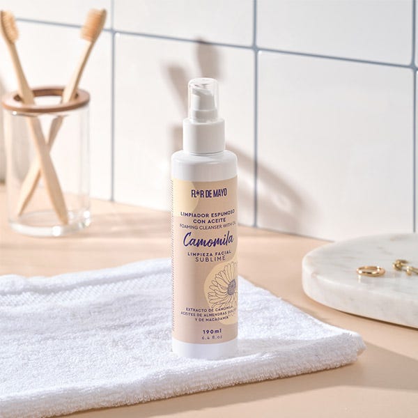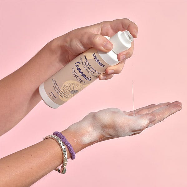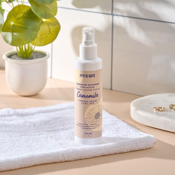 El Limpiador Espumoso con aceite de nuestra línea Camomila combina la eficacia de la limpieza profunda con el poder acondicionador e hidratante gracias al extracto de camomila y los aceites que contiene. Su textura crea una ligera espuma que ayuda a eliminar las impurezas, dejando la piel limpia y suave. Un limpiador ideal para pieles secas por su poder hidratante.