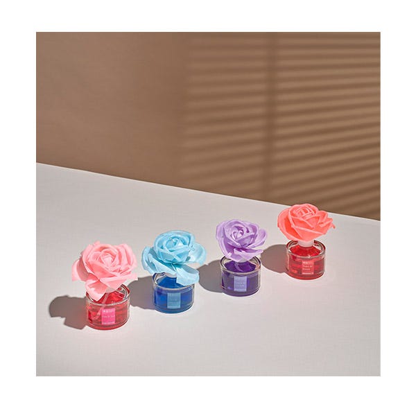 También disfrutarás más con este nuevo formato de Flor Perfumada, con una delicada flor hecha a mano, que florece a medida que absorbe el perfume; un bonito efecto que dará más encanto a tu hogar.