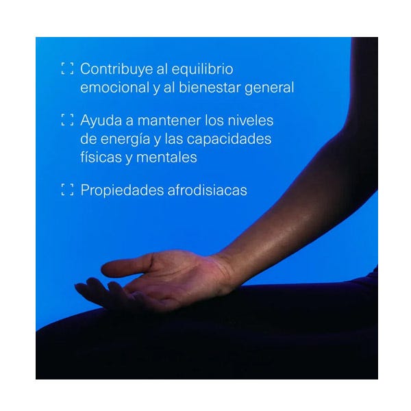 Contribuye a que el cuerpo se adapte a los factores diarios de estrés y ansiedad y mejorando el estado de ánimo al aumentar la serotonina natural