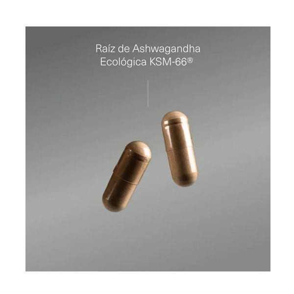 Extracto seco de raíz de Ashwagandha orgánica KSM-66® (Withania somnifera (L.) Dunal) 5% Withanólidos, Cápsula de origen vegetal (agente de recubrimiento: hidroxipropilmetilcelulosa).