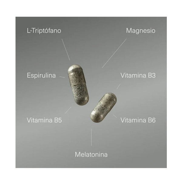 L-triptófano, Óxido de magnesio, Cápsula vegetal (agente de recubrimiento: hidroxipropilmetilcelulosa), Polvo de alga unicelular espirulina (Spirulina platensis (Gomont) Geitler), Agente de carga: celulosa microcristalina,L-leucina, Nicotinamida, D-pantotenato cálcico, extracto de bambú, Melatonina, Clorhidrato de piridoxina