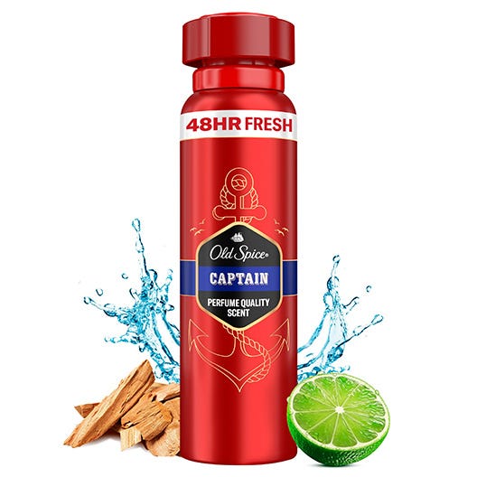 El desodorante corporal en spray Old Spice Captain para hombres combate incluso los olores más fuertes con un buen olor abrumador.