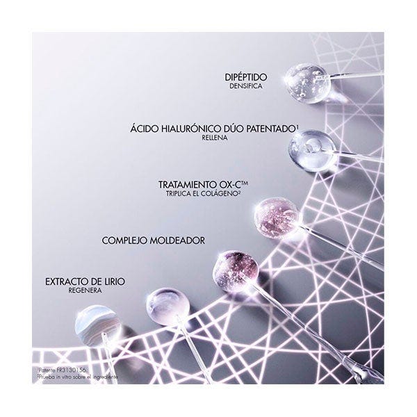 Combina un complejo reafirmante patentado² con un dúo patentado³ de ácidos hialurónicos, para un efecto rellenador.