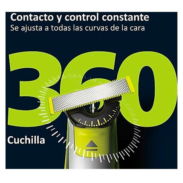 El revolucionario recambio para afeitadora, Philips, cuchilla 360 se puede girar en todas las direcciones para adaptarse a las curvas del rostro. Su diseño garantiza un contacto y control constante sobre la piel. Recorta y afeita sin esfuerzo incluso las áreas más difíciles de alcanzar, con menos movimientos y mayor comodidad.