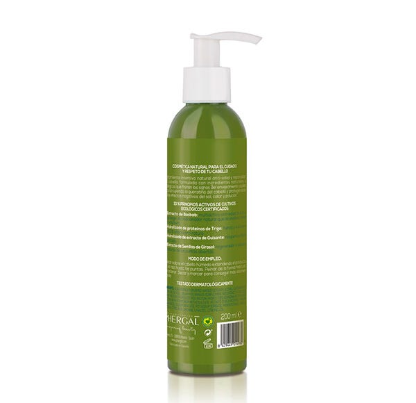 Tratamiento intensivo natural anti-edad y reparador del cabello formulado con un 96,1% de ingredientes naturales y ecológicos que frenan los signos del envejecimiento capilar reconstruyendo la queratina del cabello y protegiéndolo de los efectos negativos del sol, calor y polución.