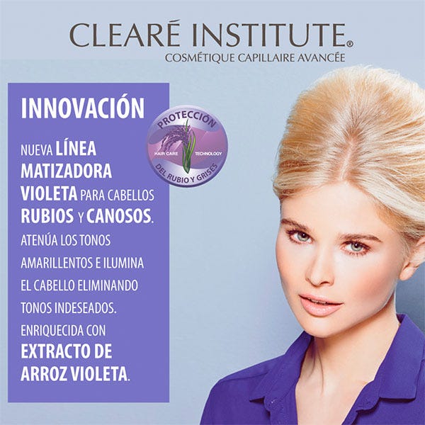 La CC Cream Matizador Violeta de Clearé Institute, es un tratamiento que atenúa los tonos amarillentos e ilumina el cabello, eliminando tonos indeseados.