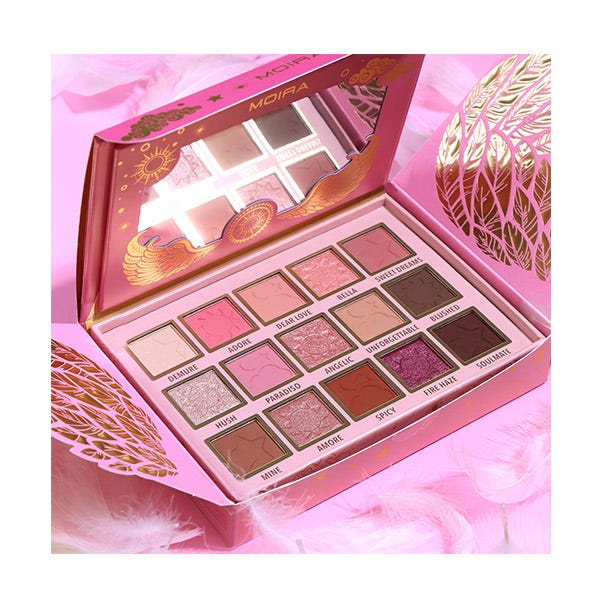 En la paleta de pigmentos prensados Celestial Love de MOIRA encontrarás sombras en tonos rosados, marrones y nude para crear los looks más dulces y elegantes.