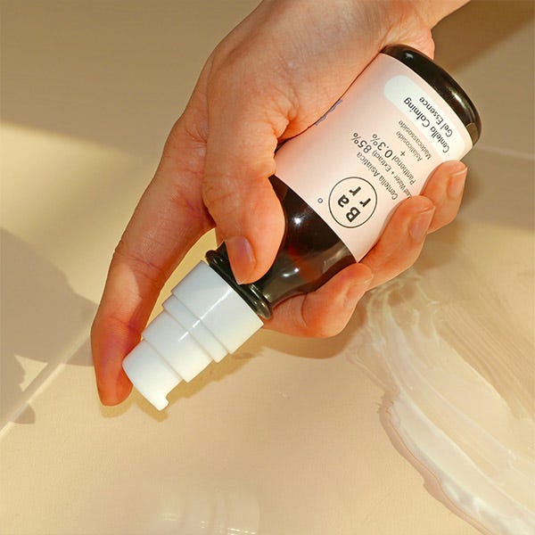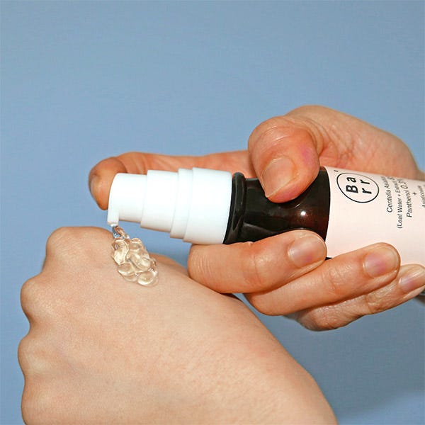 Además de su ingrediente principal, el extracto de Centella Asiática, esta esencia calmante también contiene Pantenol para calmar la piel y aceite de semilla de jojoba para hidratarla al mismo tiempo que promueve el equilibrio facial agua-aceite.