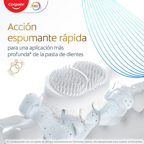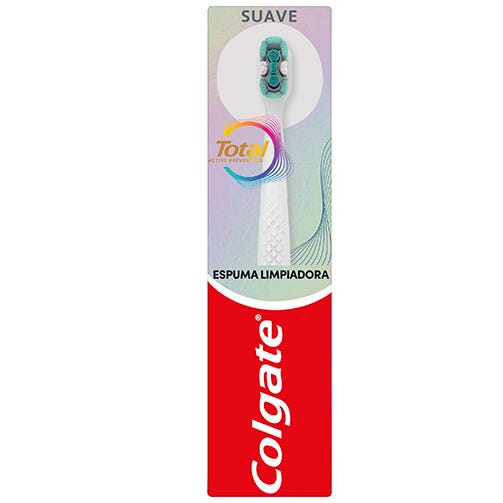 Cepilla tus dientes con el cepillo Colgate Espuma Limpiadora. Este cepillo manual ha sido diseñado específicamente para la prevención activa, ya que ayuda a combatir la causa principal¹ de las caries, la placa, los problemas de encías, el mal aliento, la acumulación de sarro y las manchas superficiales. Este cepillo de dientes proporciona una acción espumante rápida para una aplicación más profunda² de la pasta de dientes por toda la boca. Y gracias a sus filamentos de punta fina, este cepillo dental manual llega más profundamente² a lo largo de la línea de las encías y entre los dientes. Además tiene 2 veces más filamentos³ para una alta densidad. Consigue la prevención que necesitas para mantener tu sonrisa sana con Colgate.