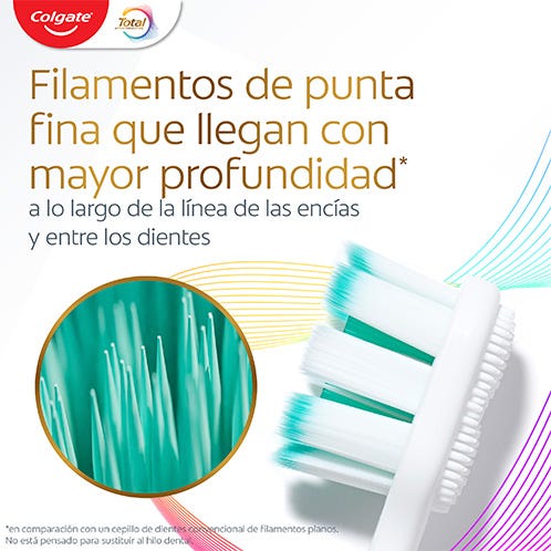 En comparación con un cepillo de dientes convencional de filamentos planos. No está pensado para sustituir al hilo dental.