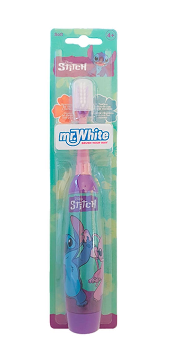 Cepillo de dientes con cerdas suaves y redondeadas con un sistema de vibración de la cabeza que permite una limpieza efectiva de la placa dental y un suave masaje de las encías. Incluye 1 pila. A tu hijo le encantará luchar contra la caries con este cepillo de dientes especialmente diseñado en los colores de STITCH
