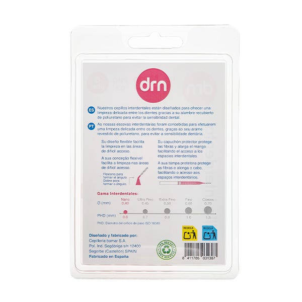 Modo de Empleo: Es importante utilizar el cepillo interdental según el tamaño de cada uno de los espacios entre dientes. Si no sabes qué tamaño de cepillo interdental usar, se recomienda empezar por el tamaño más pequeño e ir aumentando según la necesidad.