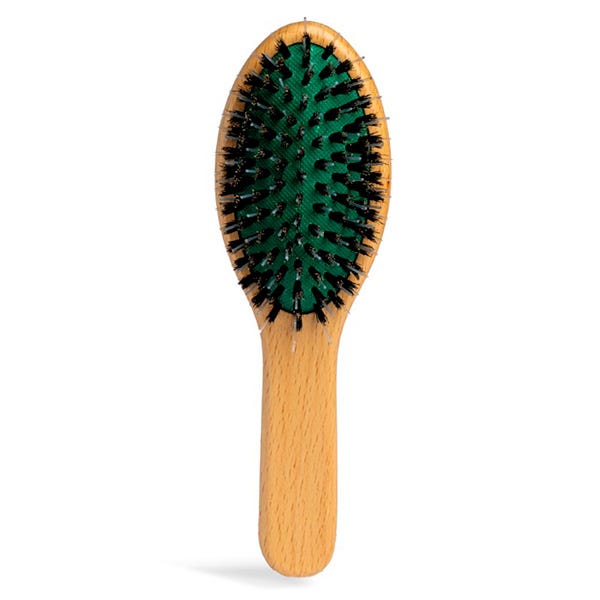 Dale un impulso a tu rutina capilar en cualquier momento con nuestro mini cepillo ovalado portátil! Gracias a su diseño innovador de cerdas dobles, este compacto compañero combina cerdas de plástico tradicionales con hebras flexibles de nylon.