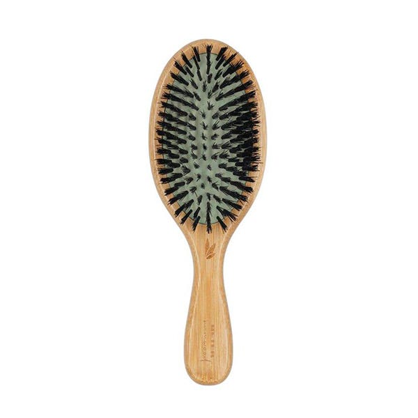 Estructura de madera con cerdas de jabalí y nylon indicado para desenredar tu cabello con mimo y suavidad a la vez que le dota de soltura flexibilidad y de un aspecto más saludable.