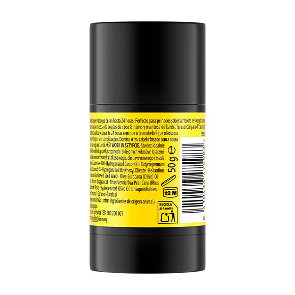 Peinados super lisos que duran hasta 24 horas. Perfecto para peinados sobre la marcha y sin complicaciones. Exclusiva mezcla de aceites de coco y recino y manteca de karité. Tu esencial para el "clean look".