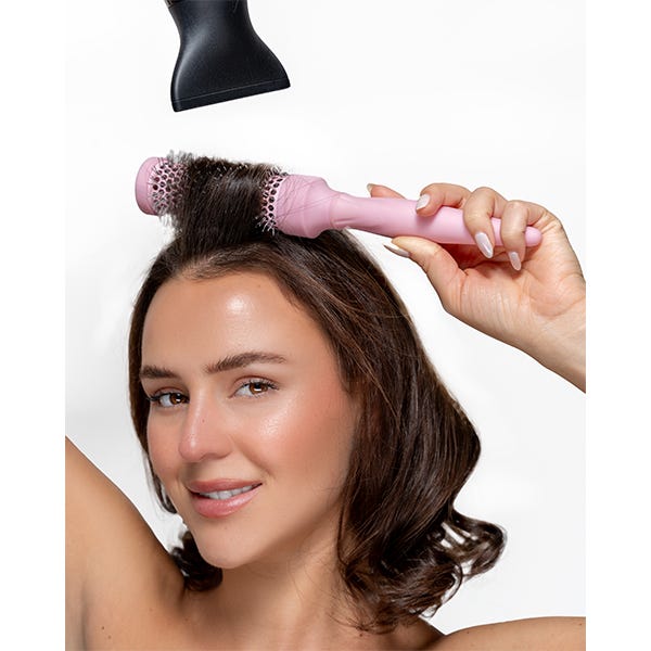 Dirige el calor hacia el barril mientras secas tu cabello, manteniendo tensión al mover el cepillo a través de tu melena.