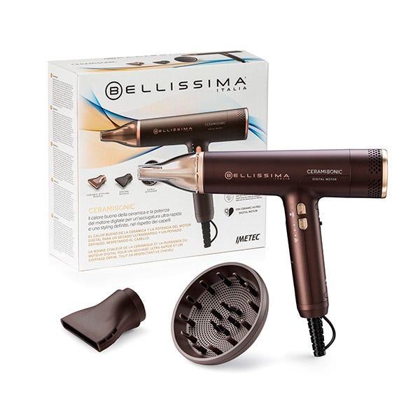 El gran éxito del secador de pelo Cerámico de Bellissima con su calor bueno de la cerámica y la potencia del motor digital para un secado ultrarrápido y un peinado de alta definición, respetando siempre el cabello.