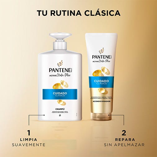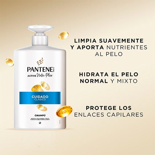 Descubre el champú Pantene Classic Clean, tu mejor aliado para nutrir y proteger tu pelo. Nuestra fórmula suave, con PRO-V y la innovadora tecnología ACTIVE NUTRI-PLEX, limpia tu pelo y le aporta nutrientes esenciales. Combínalo con nuestro acondicionador para conseguir una nutrición equilibrada en pelo normal y mixto. Testado por el Instituto Vitamínico Suizo. Experimenta lo último en cuidado capilar con el champú Pantene Pro-V Active Nutri-Plex Classic Clean.