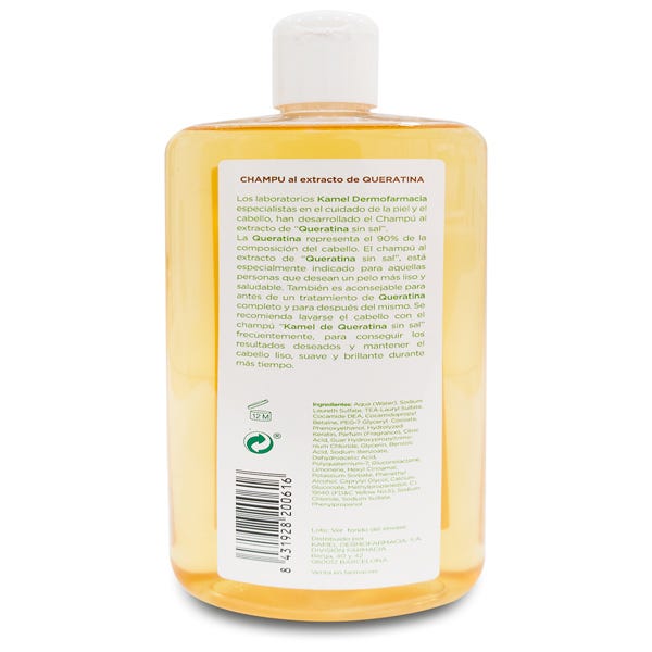 Kamel Champú de Queratina sin sal efecto liso perfecto.