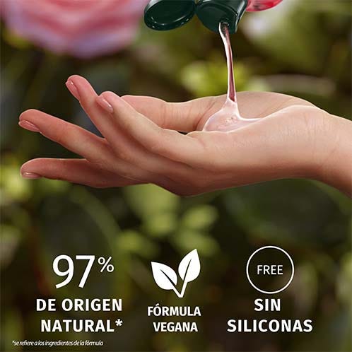 PELO SUAVE COMO PÉTALOS DE ROSA Sumérgete en el maravilloso aroma y suavidad día tras día