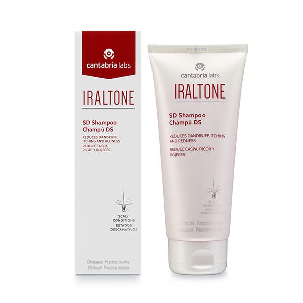 Iraltone Champú DS fórmula multi-activa a base de 5 principios activos en altas concentraciones: Piroctone Olamina, Climbazol, Ácido salicílico, Vitis Vinifera y Lactato de Amonio, que actúan sinérgicamente frente a los factores implicados en procesos que cursan con descamación, picor y enrojecimiento del cuero cabelludo seborreico prurítico.