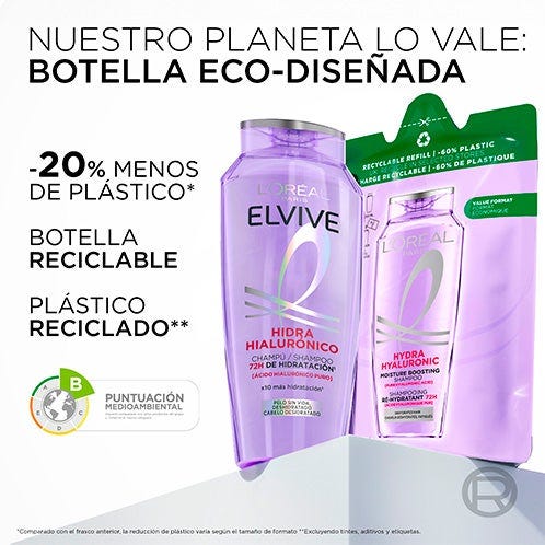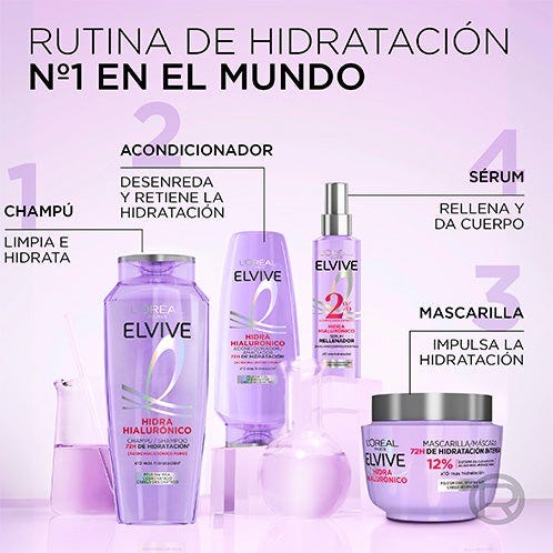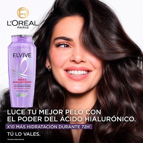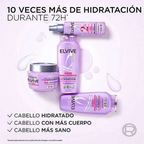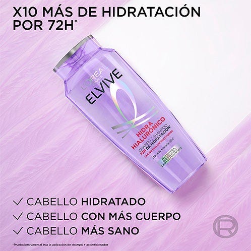 Descubre el nuevo champú con ácido hialurónico que envuelve tu pelo y lo rellena de hidratación al instante durante 72H* Gracias al Champú Hidra Hialurónico luce un pelo más brillante, x10 más hidratado* y con más cuerpo, todo esto sin apelmazar.