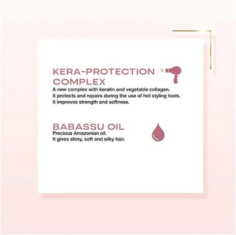 Con Kera-protection complex y Aceite de Babasú para un cabello peinable, brillante, liso y definido.