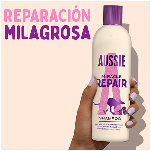 El Champú Repair Miracle de Aussie transforma el pelo seco y dañado en un pelo suave, ligero y brillante.