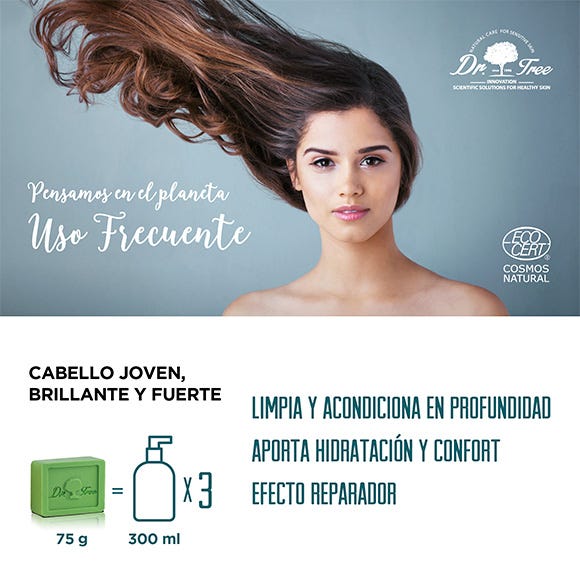 Acláralo con agua, comprobarás tu cabello limpio, brillante y acondicionado. En tu higiene habitual deja la pastilla al aire libre para que se seque, y si viajas usa la jabonera.