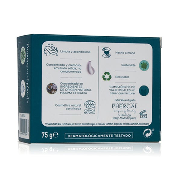 Champú sólido 2 en 1 revitalizante a base de un concentrado de tensioactivos de origen natural suaves y cremosos que forman una espuma densa y lujosa, limpiando y acondicionando el cabello sin residuos.