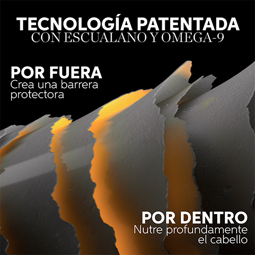 Enriquecido con escualano y omega-9 para nutrir profundamente el cabello por dentro, y fortalecer y reponer la barrera exterior del cabello – dermatológicamente probado y adecuado para cabello coloreado.