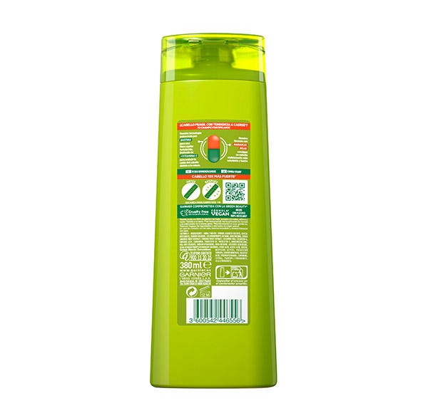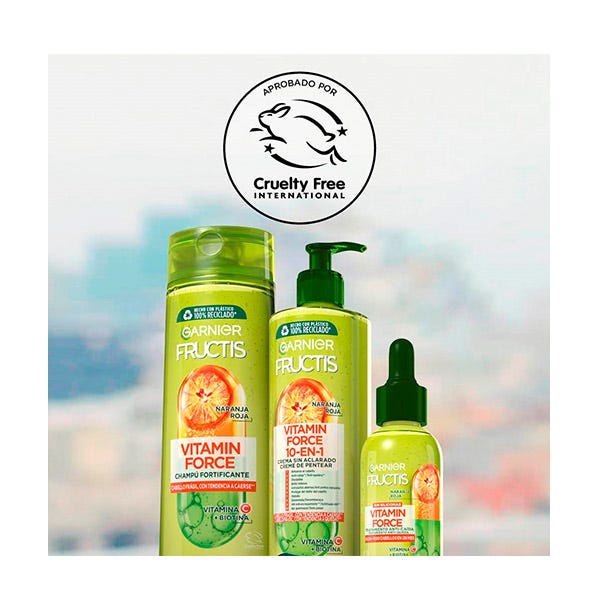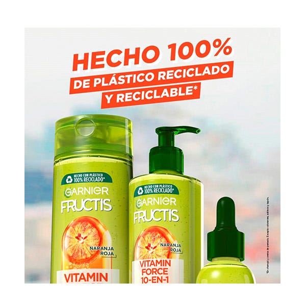 Garnier Fructis Vitamin Force Champú con Naranja Roja, Vitamina C y Biotina para pelo con tendencia a caerse. Fortalece el cabello de raíces a puntas y reduce la caída de cabello por rotura.