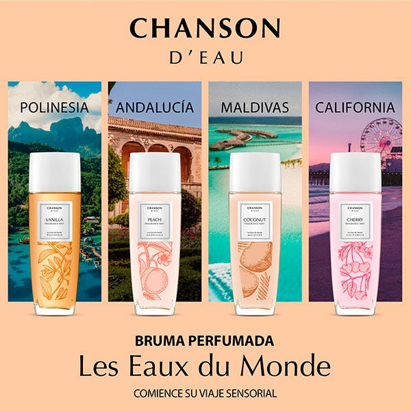 Esta deliciosa bruma es una mezcla armoniosa que celebra la generosidad de la naturaleza con notas de bayas rojas ácidas, cereza ácida y tonka amaderada. Ligeras y estimulantes, las fragancias Les Eaux Du Monde de Chanson d'Eau están diseñadas para usarse en todo el cuerpo y el cabello. Pruebe a combinarlo con otras brumas de la colección para crear su propia mezcla exclusiva. Llega un refrescante mundo de fragancias para mujer, con Chanson d'Eau Les Eaux du Monde.