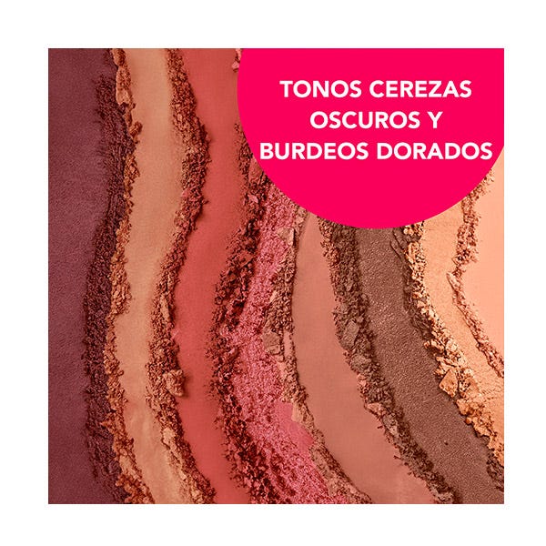 Consigue looks interminables y siempre llenos de glamour con la paleta de sombras de ojos Cherry Glamour Soirs de Bourjois. Esta paleta imprescindible presenta 8 tonos de larga duración en intensos tonos cereza profundo grunge y sofisticados dorados burdeos, igualmente fáciles de construir y difuminar, para lograr looks de glamour parisino de día a noche. Su fórmula cremosa que se transforma en polvo, resistente a transferencias y pliegues, y colores altamente pigmentados te permiten conseguir todos los acabados que necesitas: mate, brillante y metálico, adaptando el tono a tu estado de ánimo en un instante.