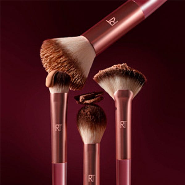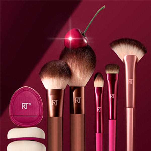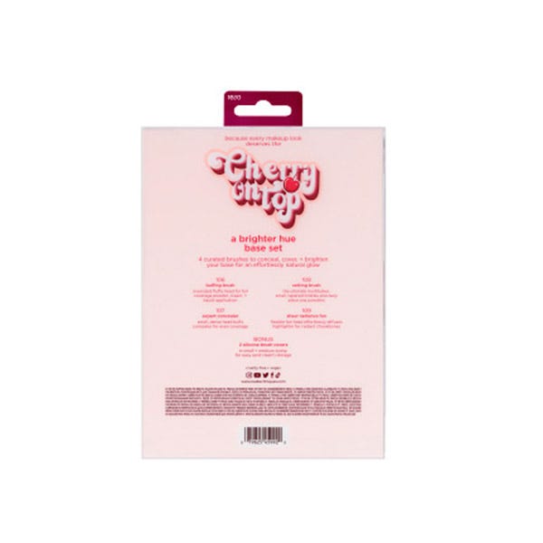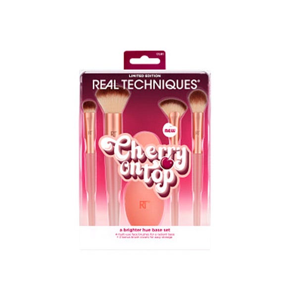 Prueba todos los productos de nuestra colección Cherry On Top de edición limitada, porque cada look de maquillaje merece la guinda del pastel. Las brochas de maquillaje son fáciles de limpiar con nuestro gel limpiador Brush + Sponge de Real Techniques. Además, son 100 % libres de crueldad animal y están hechas con cerdas sintéticas UltraPlush.