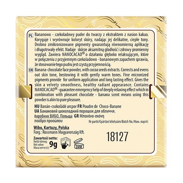 Polvo para la cara de plátanos y chocolate, con extracto de semillas de cacao.