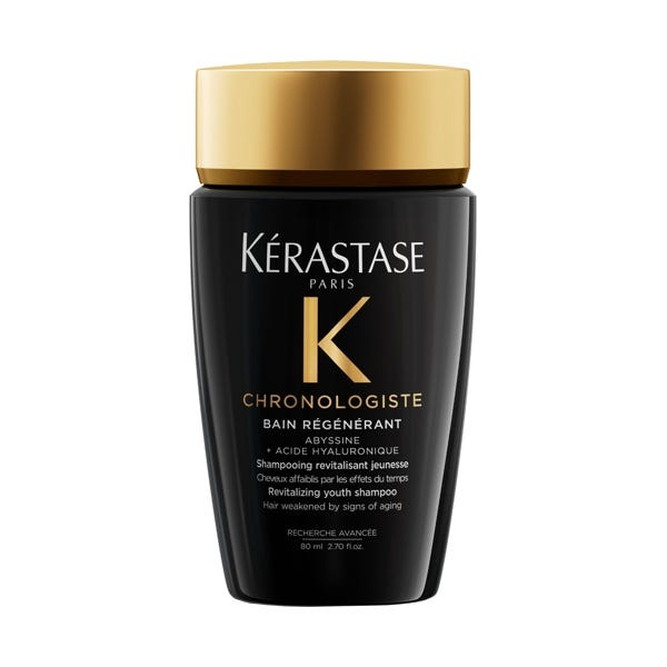 El Baño Regenerador de Kérastase es un champú revitalizante y rejuvenecedor con ácido hialurónico y abyssine, formulado para cabello debilitado por los signos de envejecimiento capilar, sequedad, opacidad, encrespamiento, y falta de volumen y grosor.
