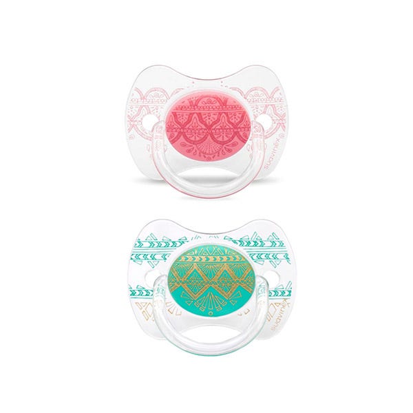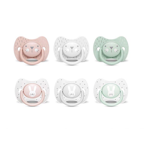 Chupetes en talla 0/6 meses con tetina fisiológica de silicona.