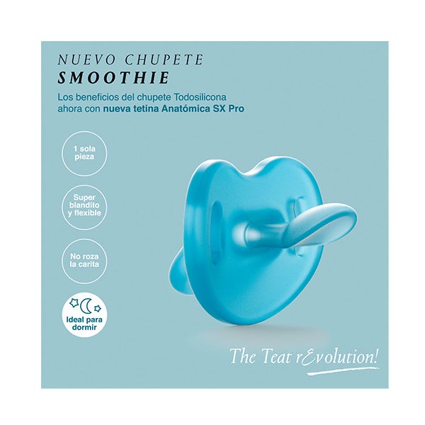 Nuevo chupete smoothie todo silicona con la nueva tetina anatómica SX Pro para bebés 6-18 meses.