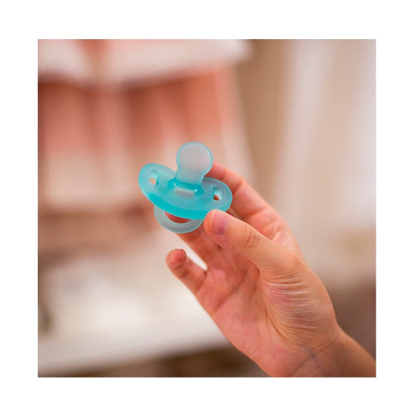 Chupete fabricado en una sola pieza de silicona. Ideal para dormir ya que no marca la carita del bebé.