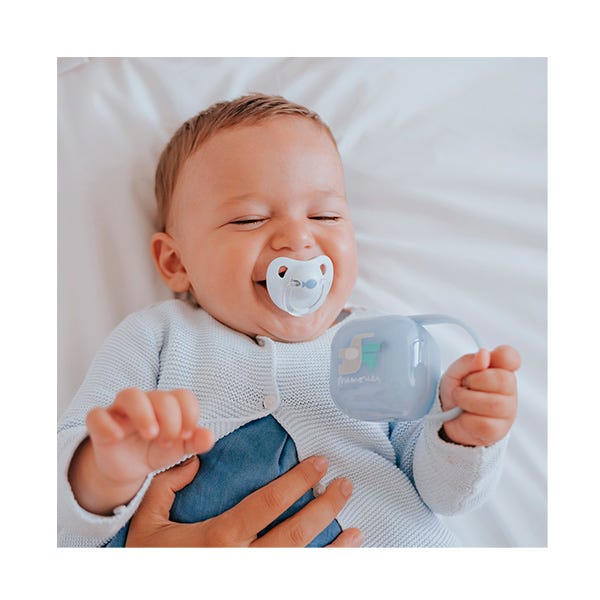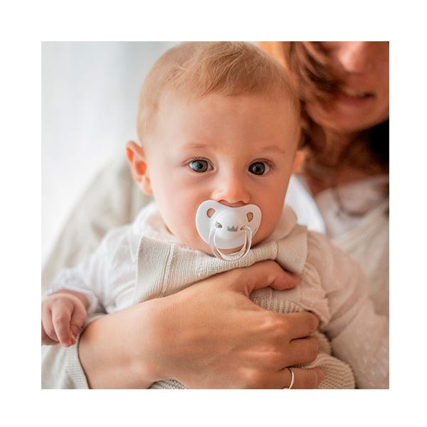 La forma anatómica de la arandela permite percatarse si el chupete está colocado al revés.